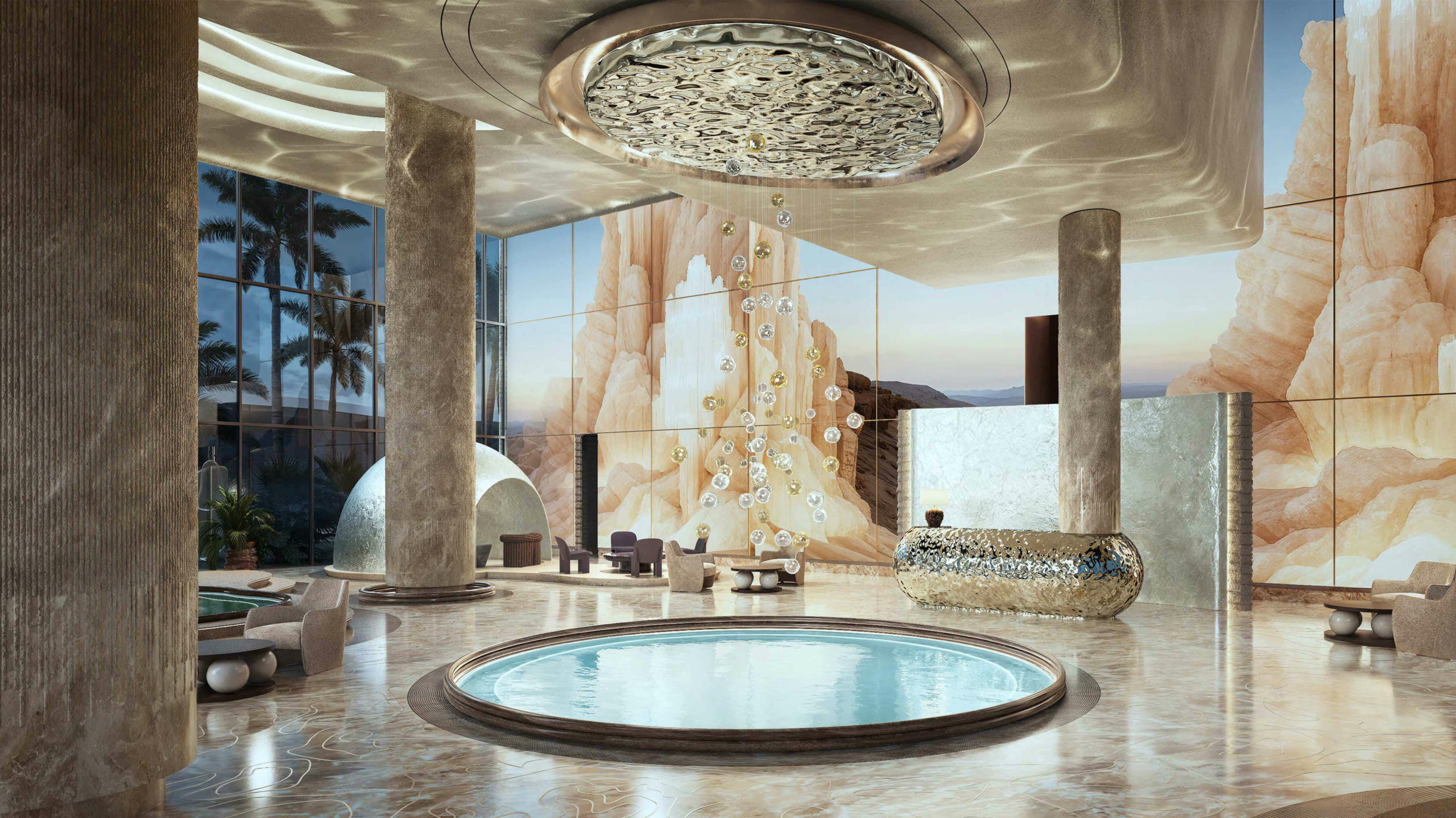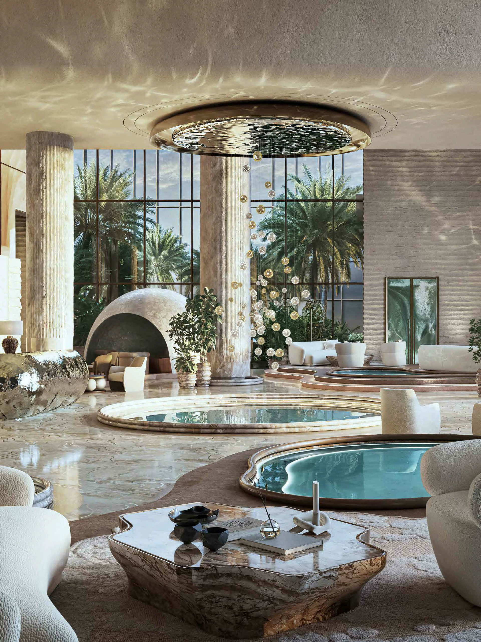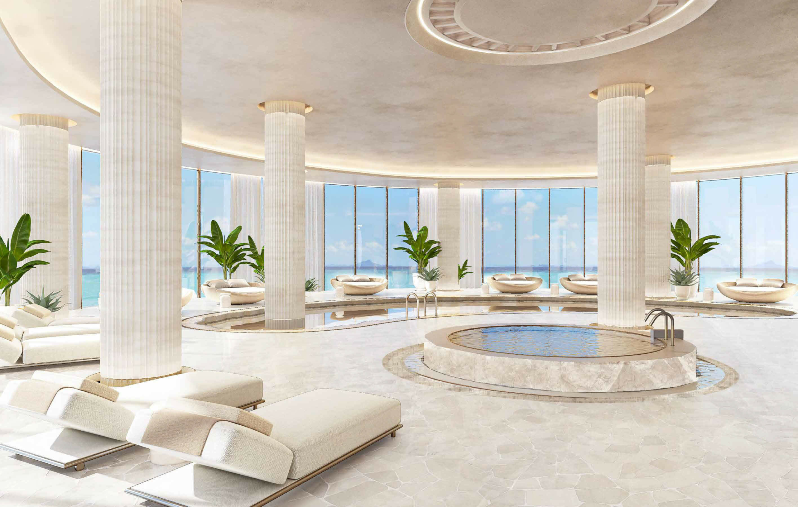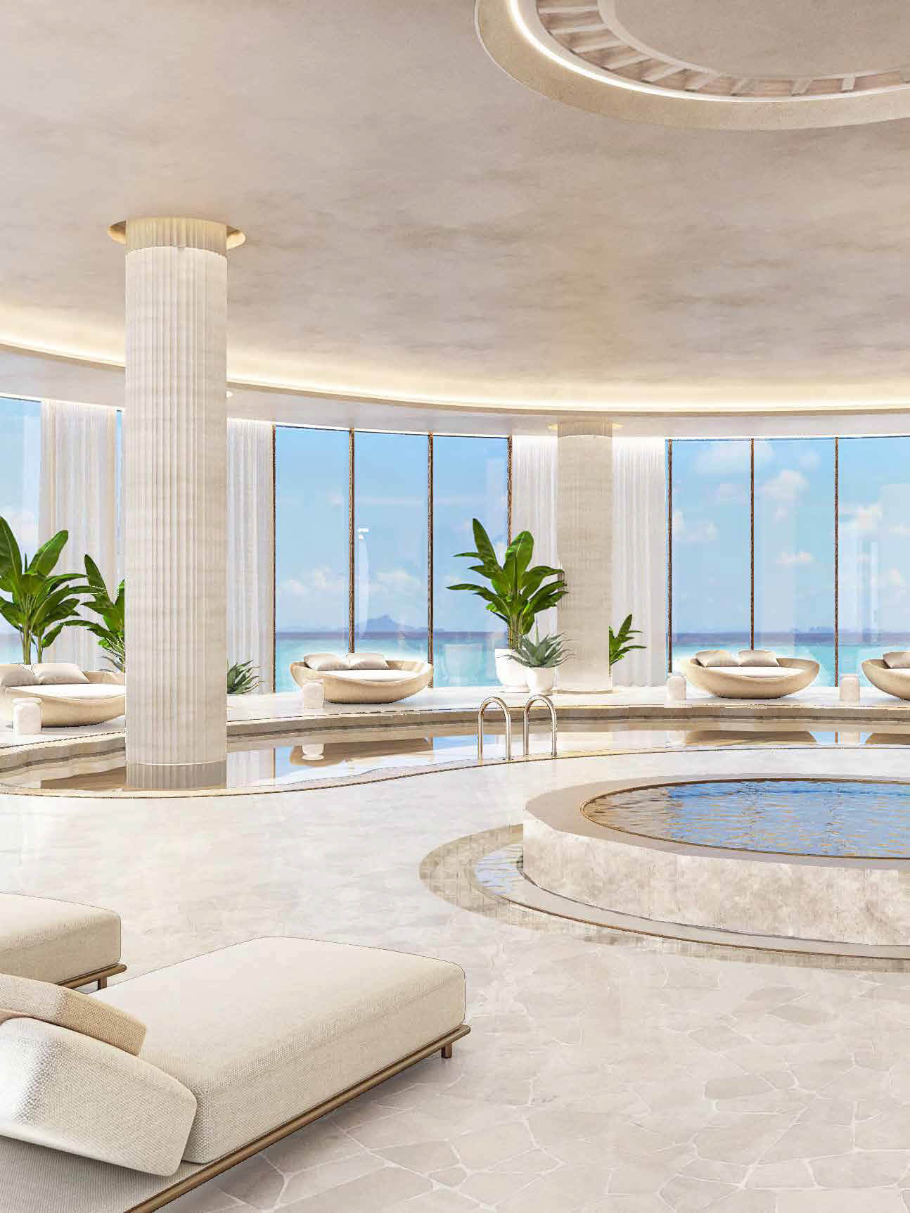 Trois tours face à la mer, 820 appartements entièrement meublés et servis, une architecture biophilique, et plus de 470 000 sq.ft d’espaces dédiés à la santé, à la détente et à la longévité.