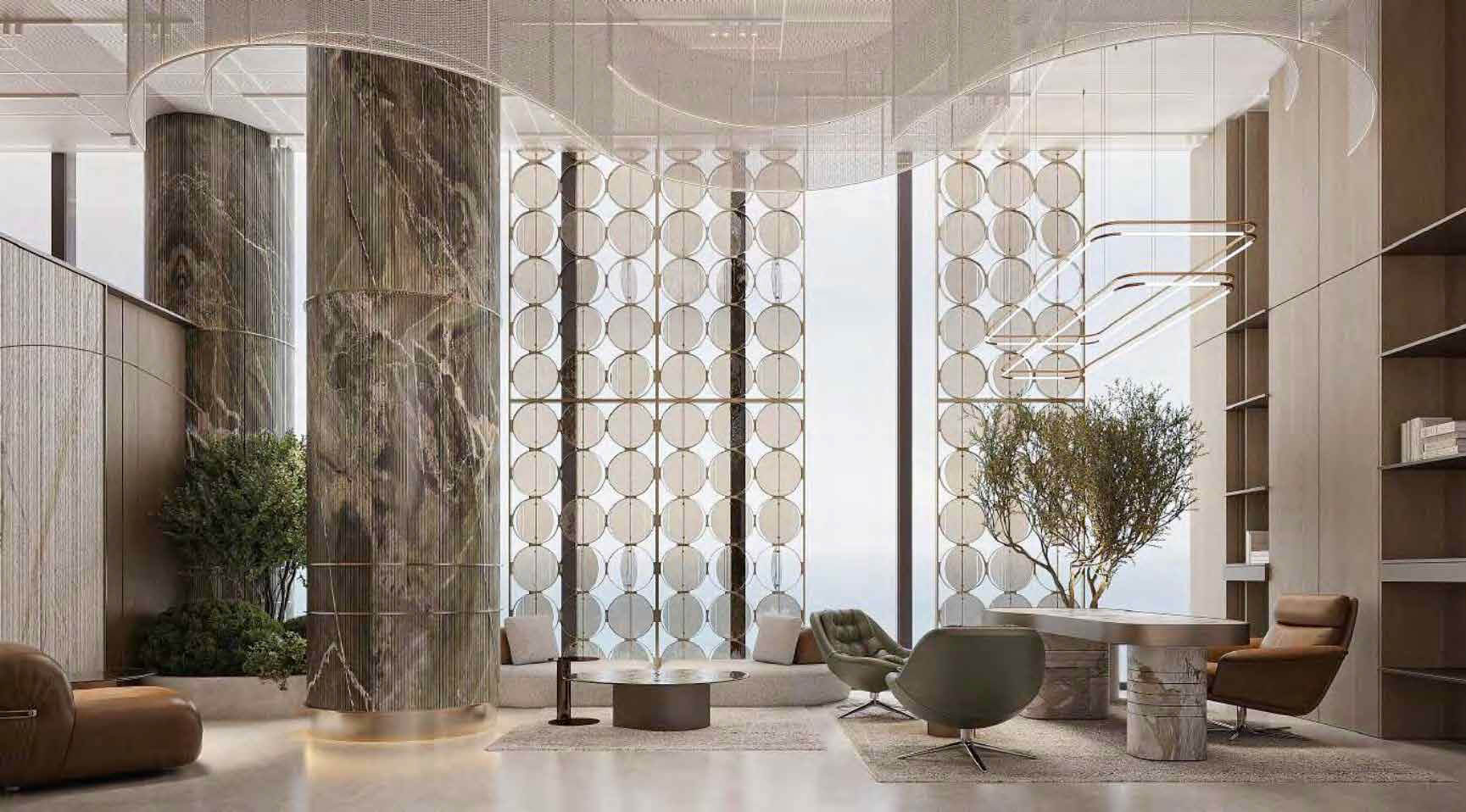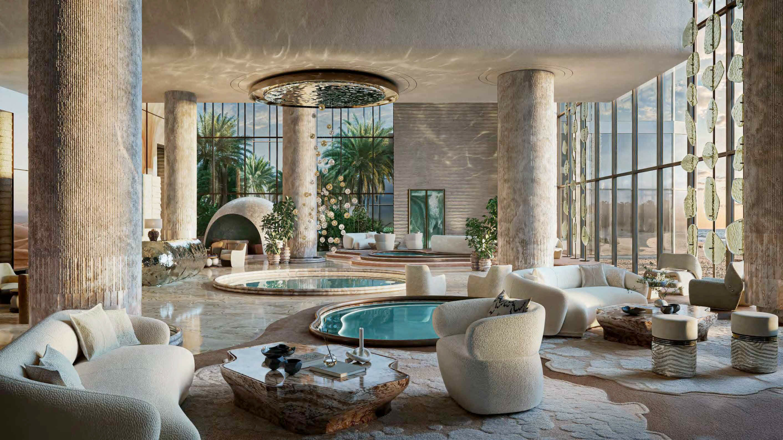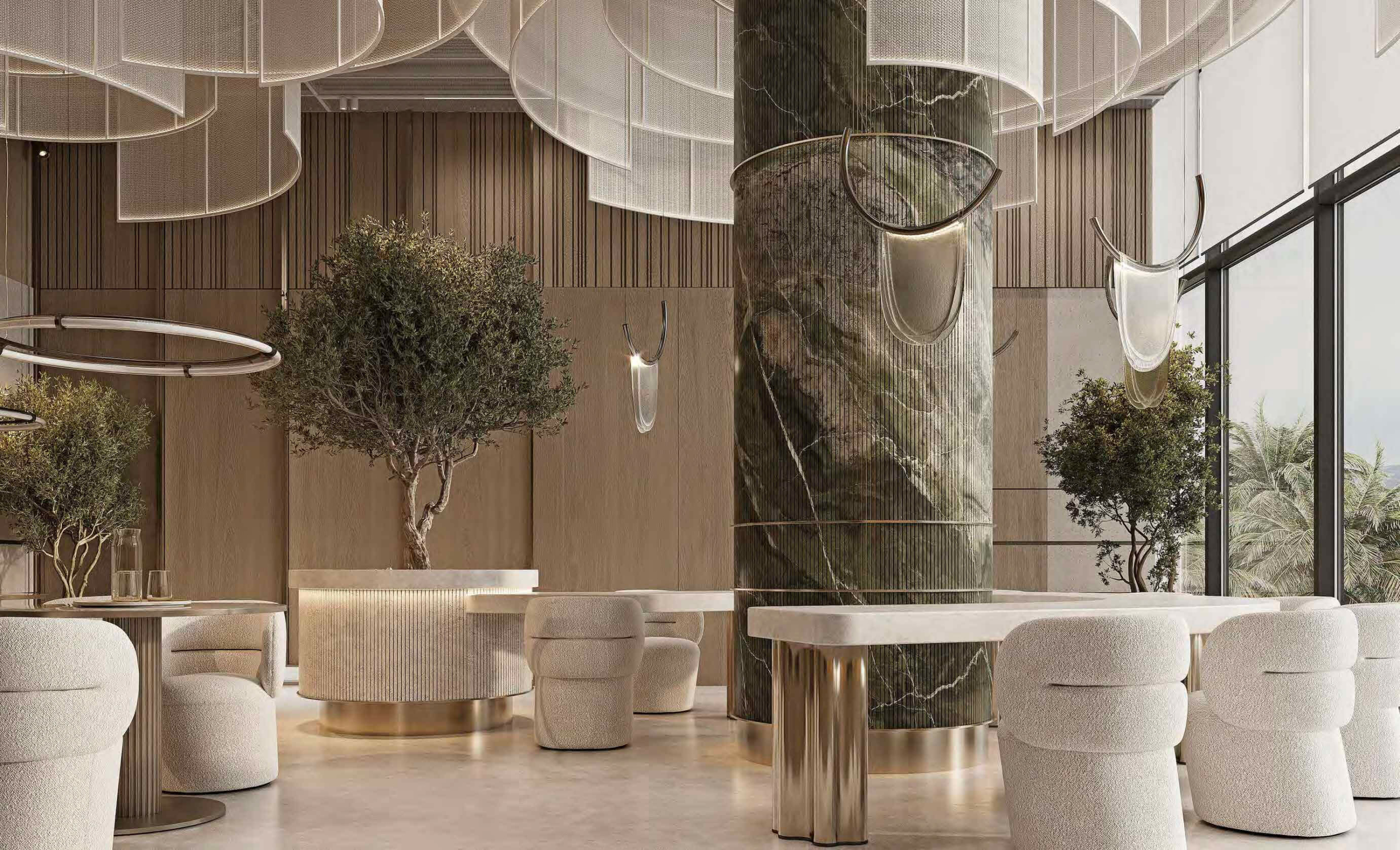 Trois tours face à la mer, 820 appartements entièrement meublés et servis, une architecture biophilique, et plus de 470 000 sq.ft d’espaces dédiés à la santé, à la détente et à la longévité.