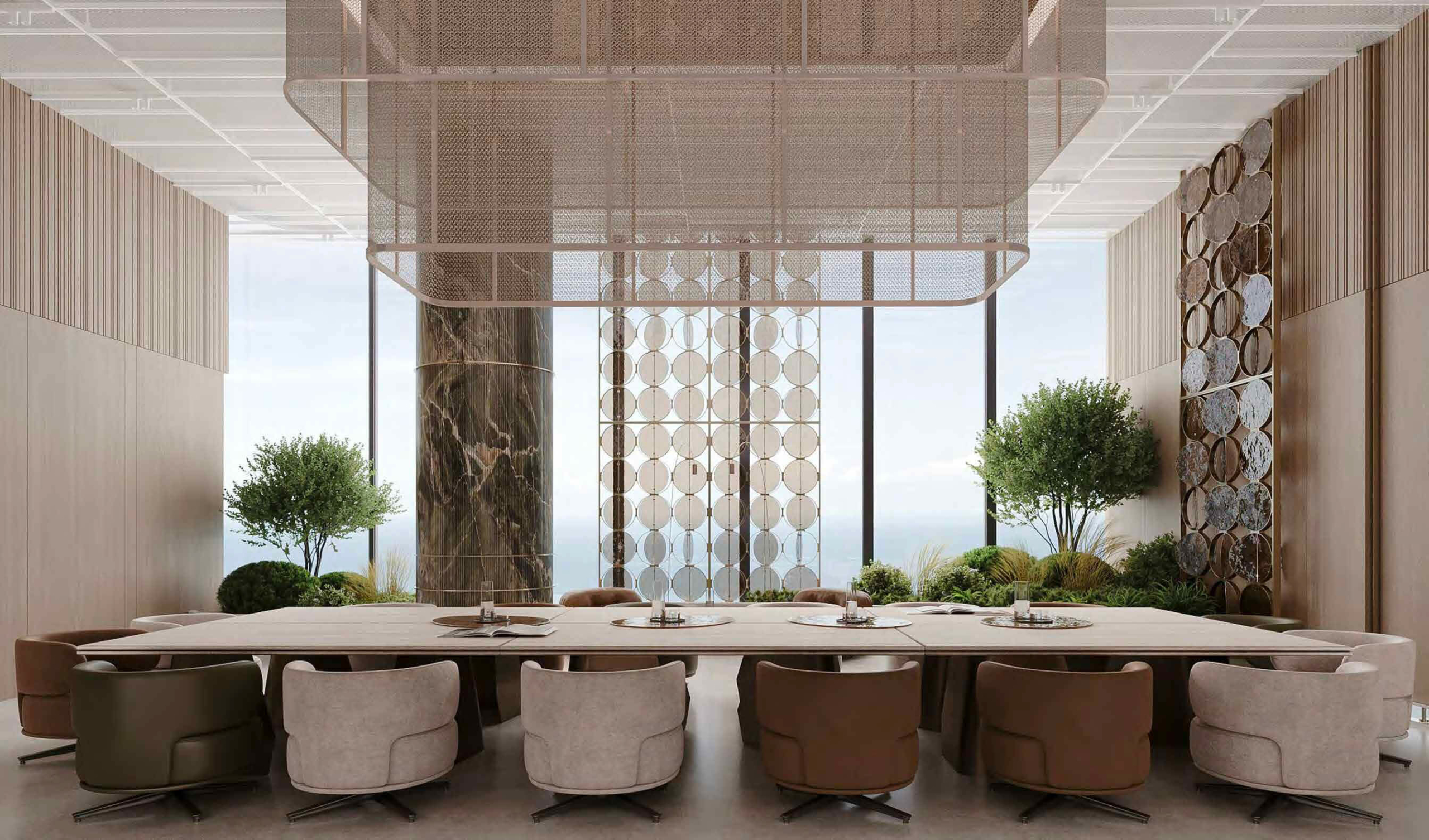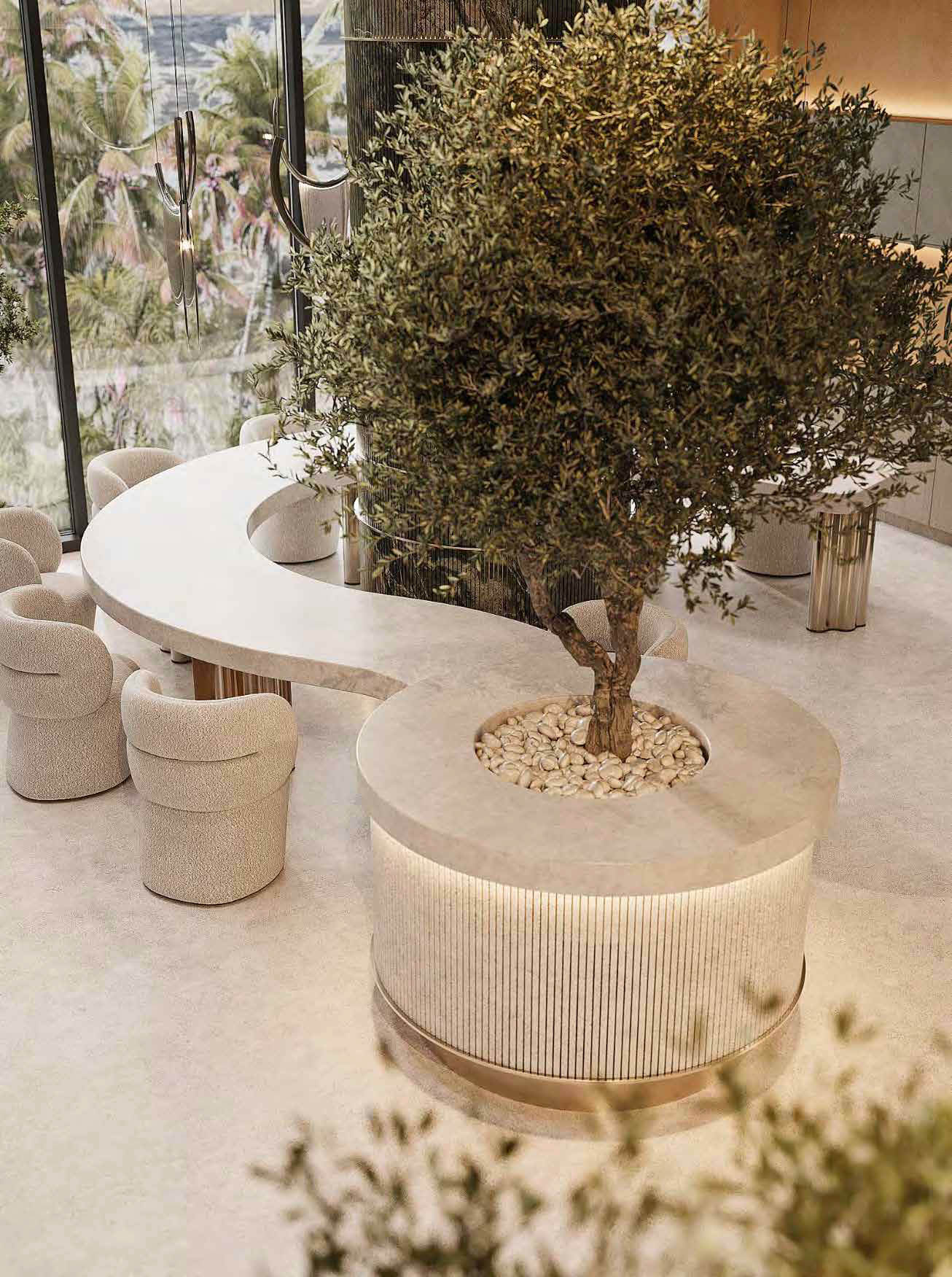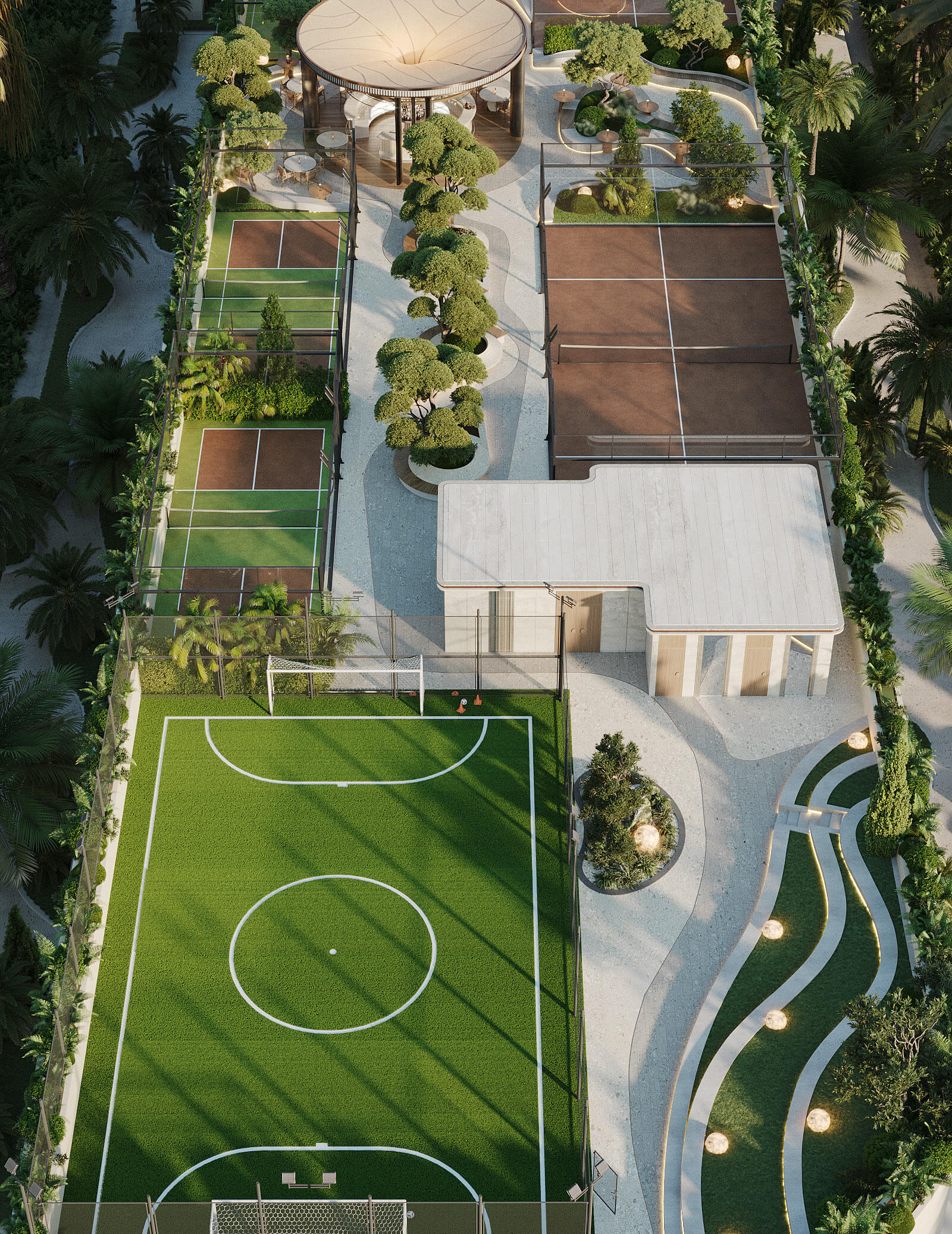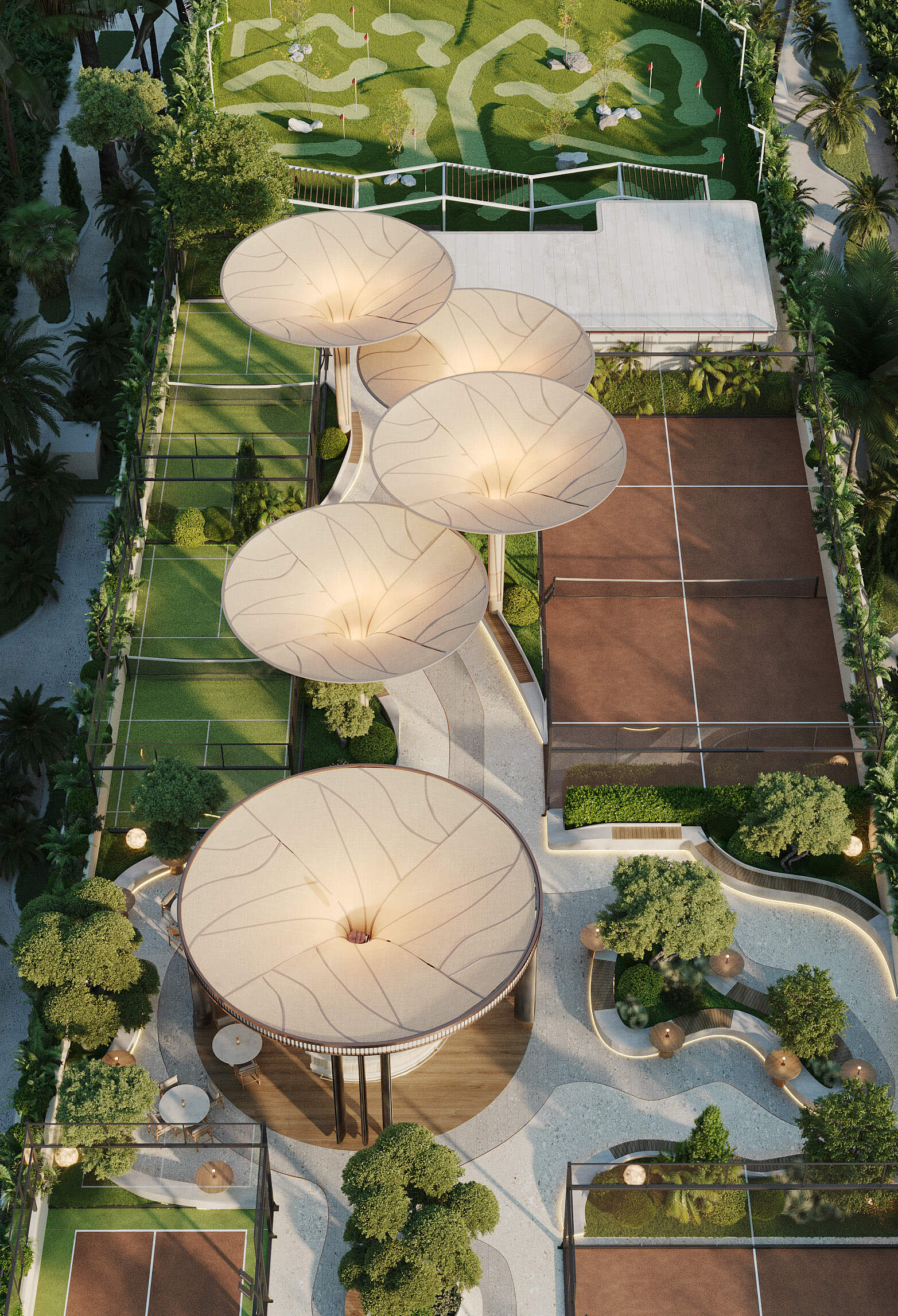 Trois tours face à la mer, 820 appartements entièrement meublés et servis, une architecture biophilique, et plus de 470 000 sq.ft d’espaces dédiés à la santé, à la détente et à la longévité.