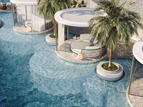 🏊 Sport & Bien-être : piscines (adultes et enfants), jacuzzi, gym calisthenics, studio yoga, terrain de football, cricket batting, mini-golf, piste de jogging